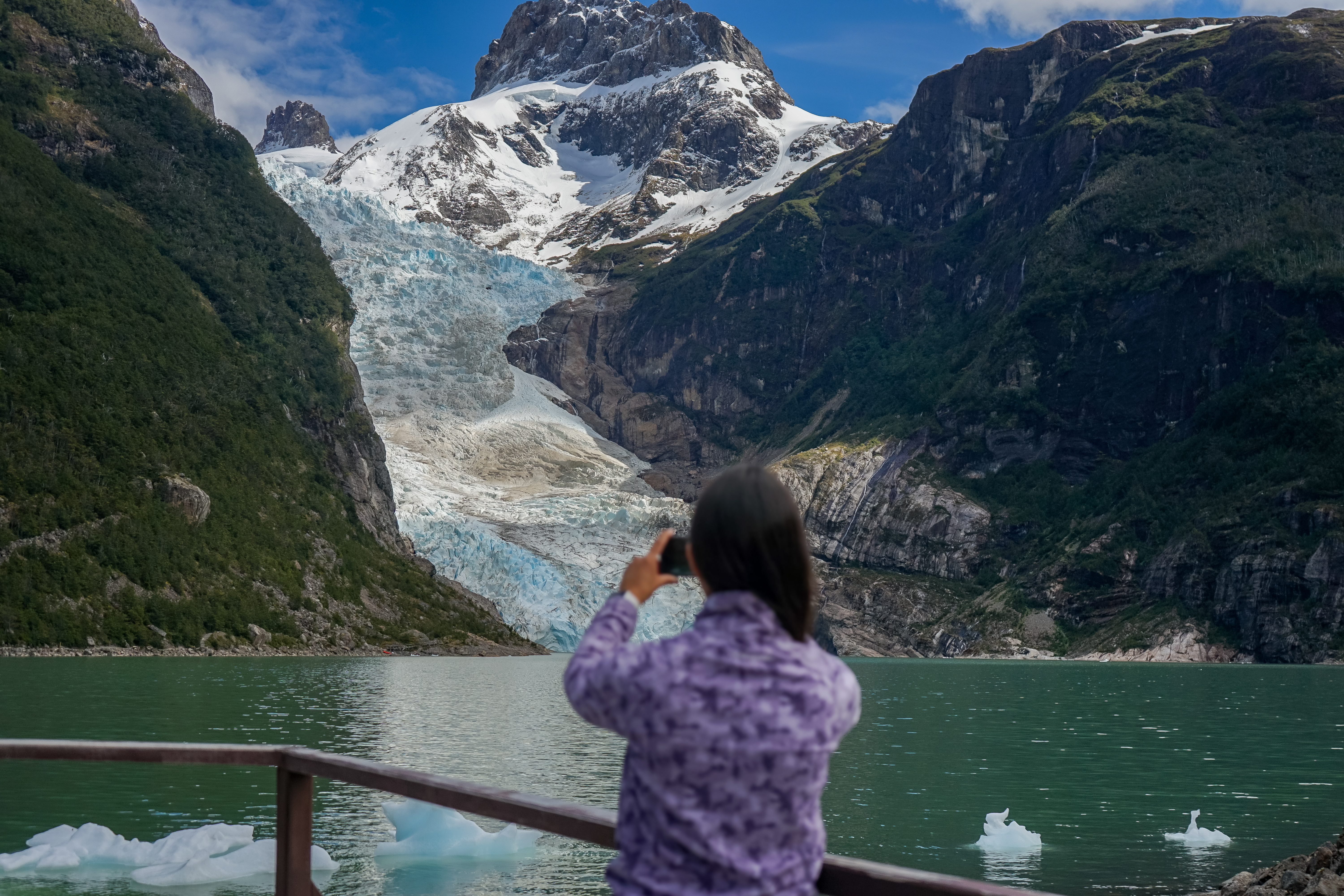 El viaje continúa hacia el Monte Balmaceda (2.035 metros de altitud) donde podremos apreciar el glaciar del mismo nombre y luego desembarcaremos en Puerto Toro para comenzar la caminata de una hora ida y vuelta por la ribera de la laguna Témpanos, acompañados por nuestro guía Bilingüe, a través de un bosque nativo de coihues, ñirres y ciruelillo, rumbo al glaciar Serrano, disfrutaremos de la fascinante vegetación y el imponente glaciar.
